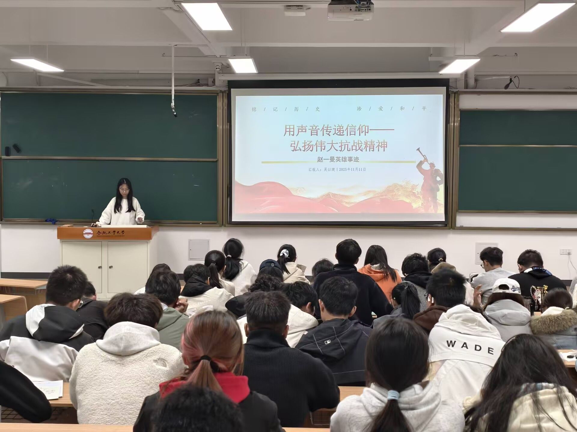 11月11日晚,资源与环境工程学院第74期预备党员班学员走进2025级新生6个班级,开展“用声音传递信仰——弘扬伟大抗战精神”主题宣讲活动。