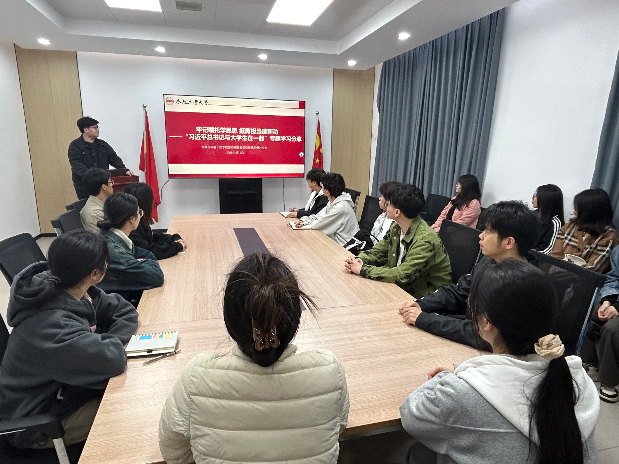 4月3日下午,资源与环境工程学院第75期预备党员班在屯溪路校区西教304会议室围绕“牢记嘱托学思想 笃行实干建新功”主题,开展了第三次课后学习研讨。