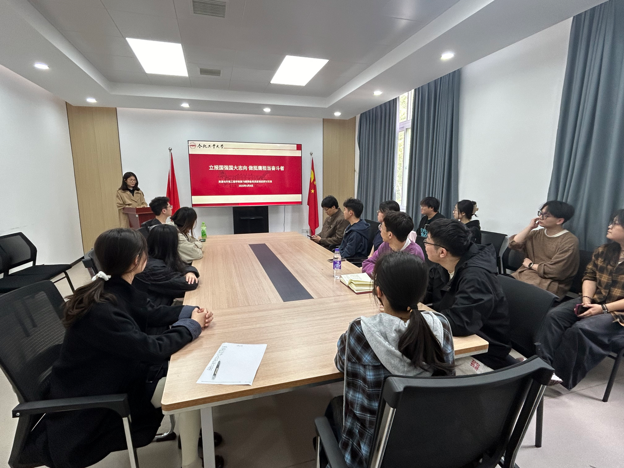 4月8日下午,资源与环境工程学院第75期预备党员班在屯溪路校区西教304会议室围绕“立报国强国大志向 做挺膺担当奋斗者”主题开展第四次课后学习研讨。