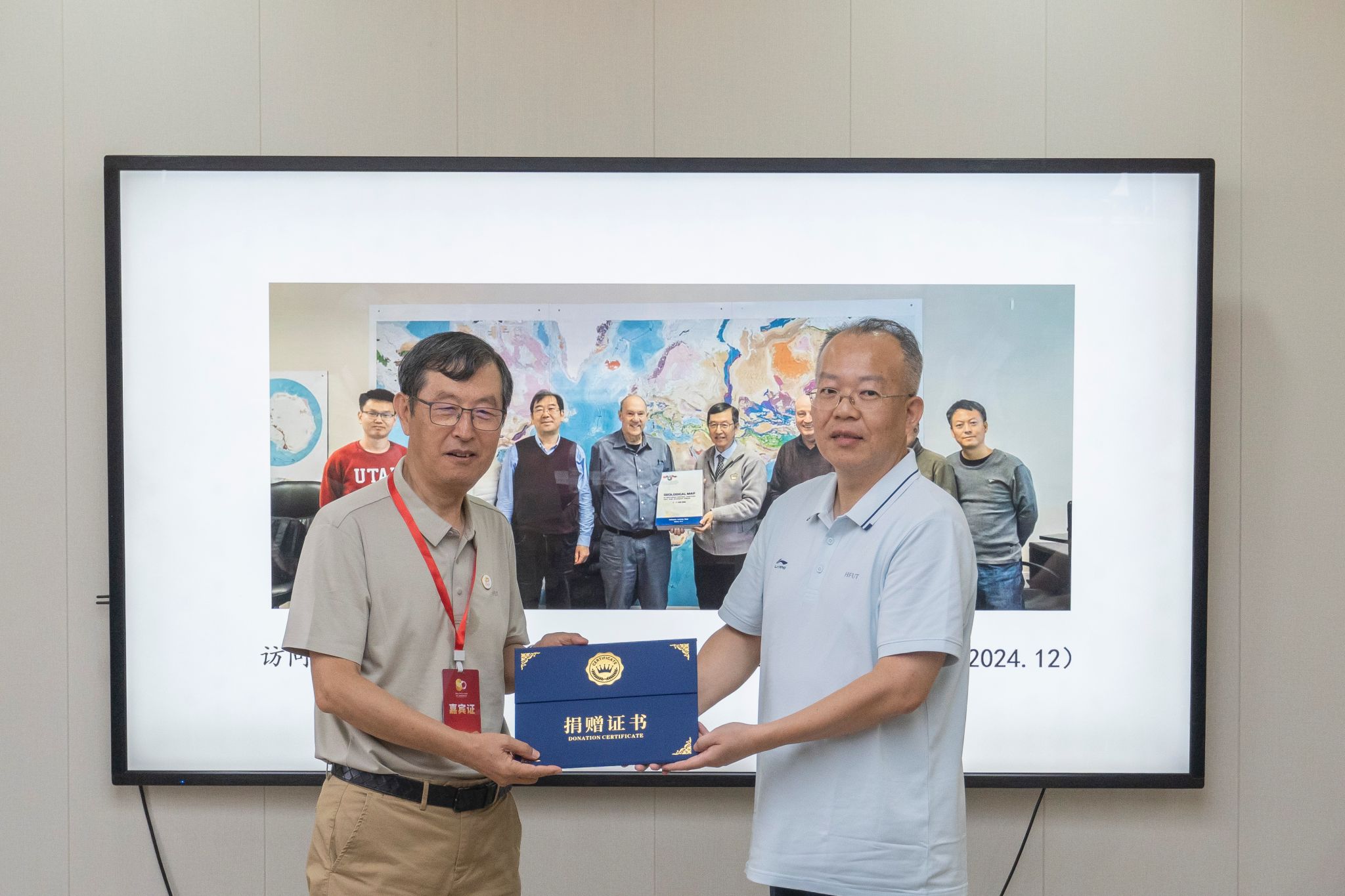 在全场嘉宾的见证下,董树文教授将北-中-东亚及邻区地质图及说明书捐赠学院,院长袁峰代表学院接受捐赠,并向董树文教授颁发了捐赠证书。
