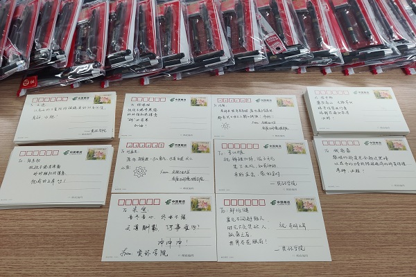 活动中,每一位党员同学都亲手为考研同学写下了自己的祝福语,为他们在艰苦的考研路上送去温暖和鼓励。同时,学院还为每一位资环考研学子都精心准备了考研文具套装,并在辅导员老师的带领下将学院的祝福和关怀一个个送到考研学生手中,希望他们在考研路上乘风破浪,一往无前,最终顺利上岸。