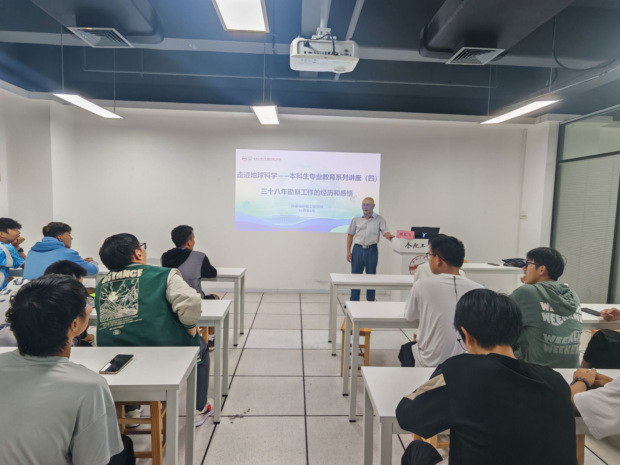 在首个全国科普月到来之际,为普及地球科学知识、激发专业兴趣,9月25日下午,资源与环境工程学院在翡翠湖校区科教楼A座603会议室举办“走进地球科学,启航大学生涯”为主题的新生专业认知讲座。安徽省勘察大师、高级工程师胡孔飞受邀主讲,勘查专业全体新生参加讲座。
