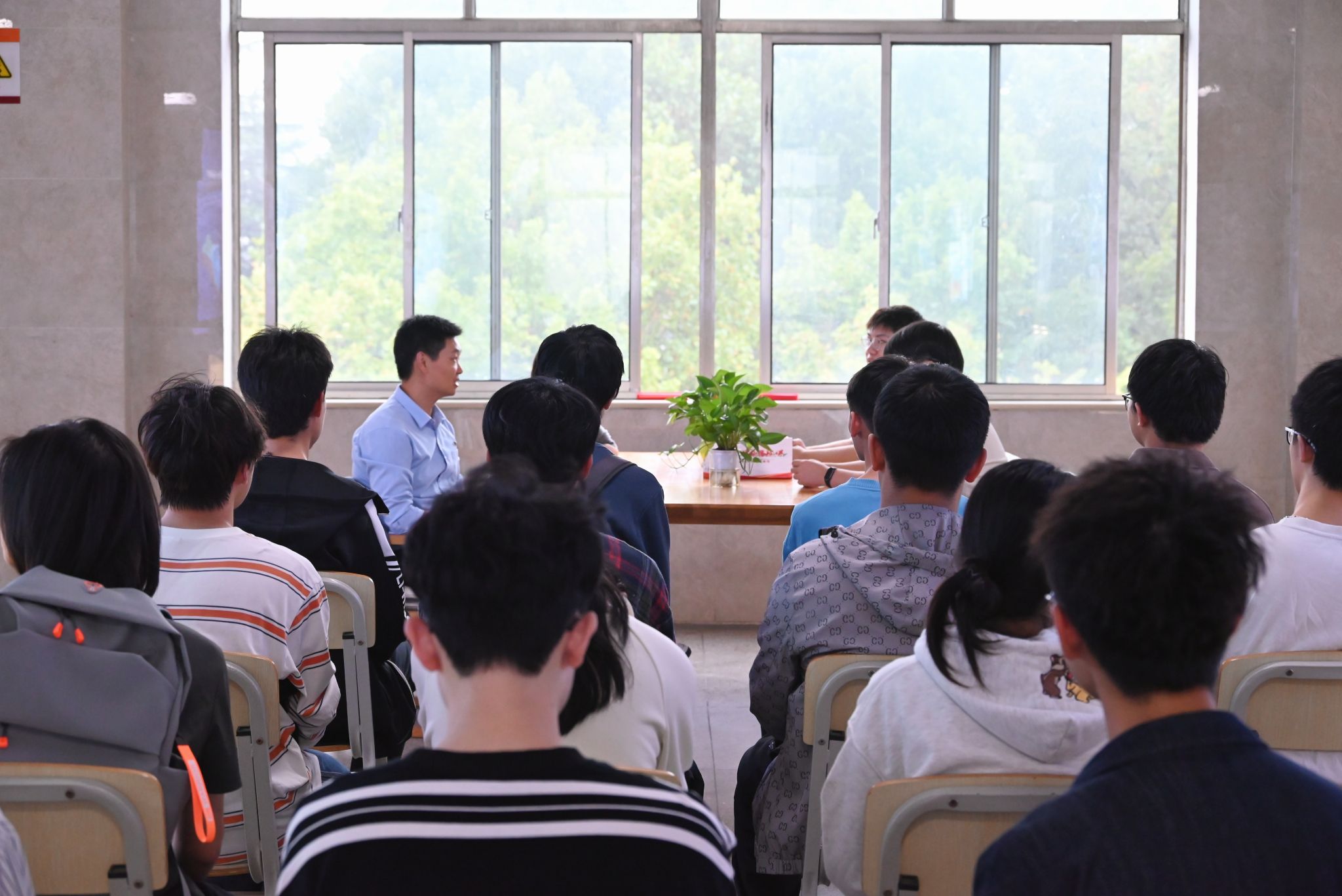 随后,师生围坐在一起,就地质精神的时代内涵、青年学子的使命担当等方面展开了热烈的分享交流。同学们纷纷表示,在实地参观和师生互动中,进一步厚植了地学文化根基,传承了工业报国精神。