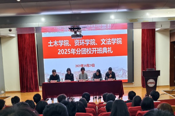 为加强入团积极分子思想引领,夯实共青团育人根基,10月29日下午,资源与环境工程学院、土木与水利工程学院、文法学院在翡翠湖校区建艺馆负一楼报告厅联合举办2025年分团校开班典礼暨第一次主题团课。各学院团校相关负责人及入团积极分子100余人参加会议。