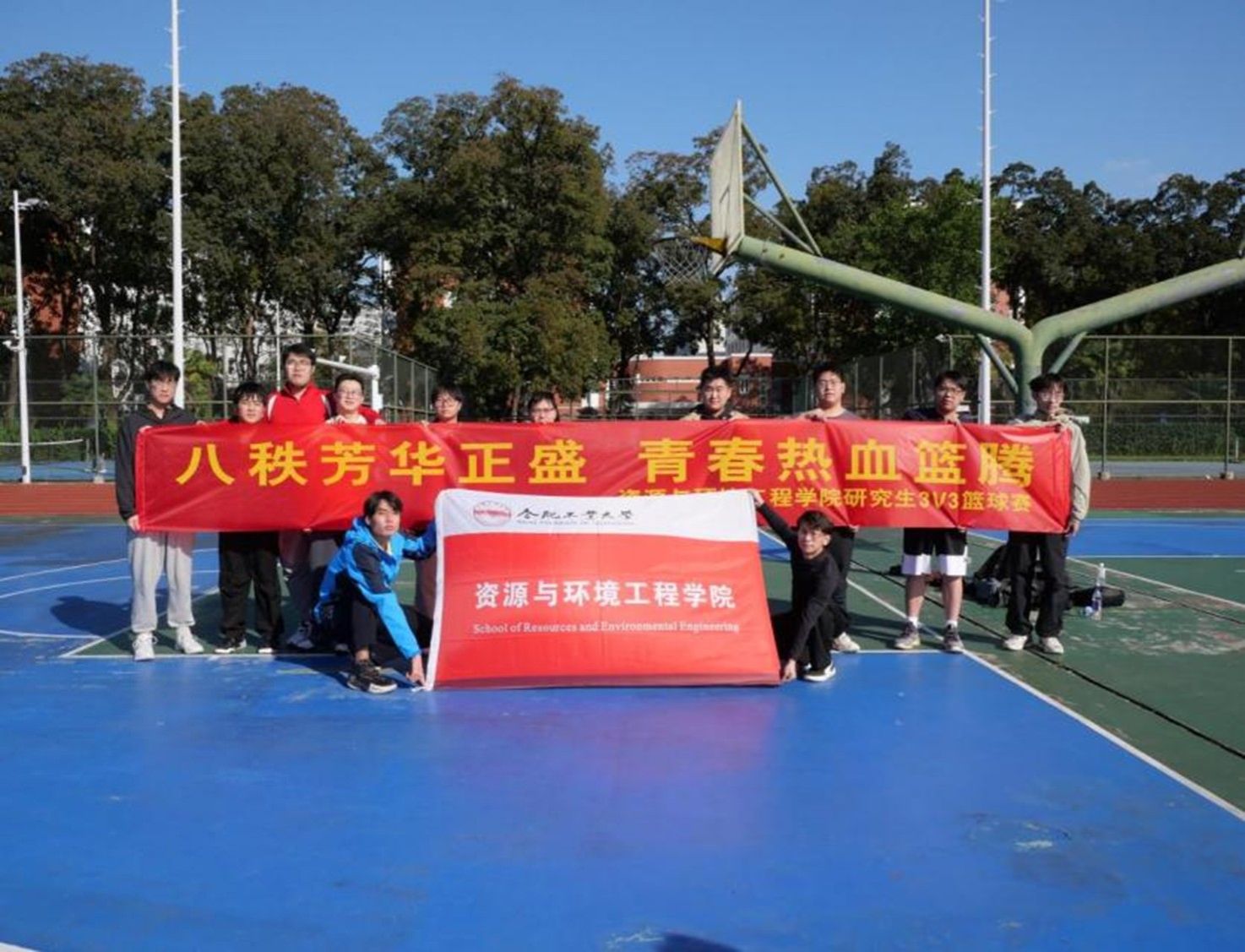 为营造健康阳光、积极向上的校园文化氛围,10月23日下午,资源与环境工程学院在屯溪路校区篮球场成功举办“八秩芳华正盛,青春热血篮腾”研究生3V3篮球赛。