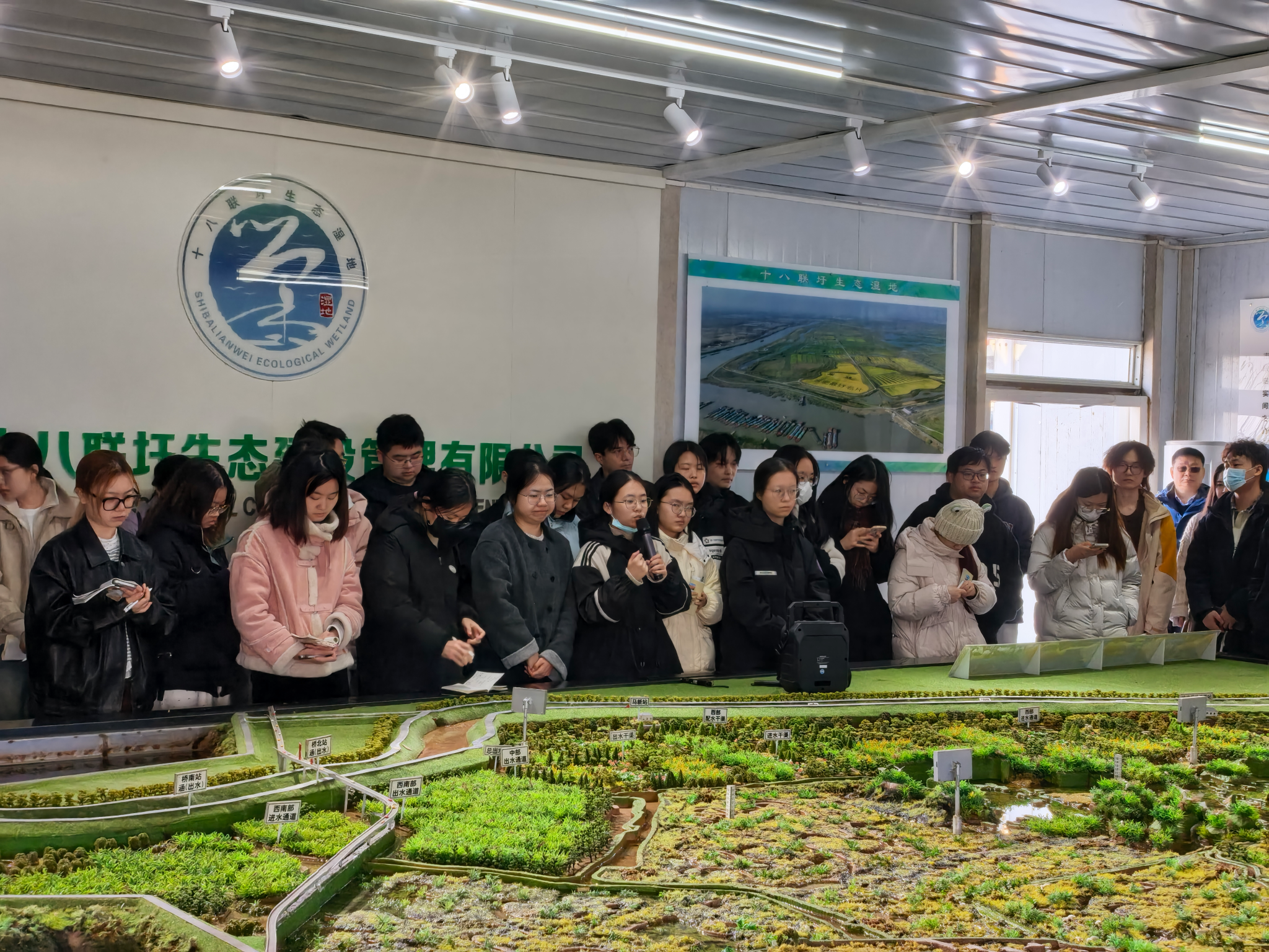 十八联圩是国内规模较大的近自然人工湿地,既是巢湖流域重要的生态缓冲带,也是环巢湖湿地群的关键组成部分。活动中,党员们实地参观湿地生态系统模型及相关设施,系统了解湿地在维护区域水环境、改善巢湖生态方面的重要作用。在随后走访的湿地科普馆中,全员深入学习了十八联圩生态修复的实施背景、具体措施与显著成效。在参观学习的基础上,教师党员结合现场设施,讲解湿地生态系统的结构与功能,从专业角度深入阐释了生态修复的实践价值与战略意义。