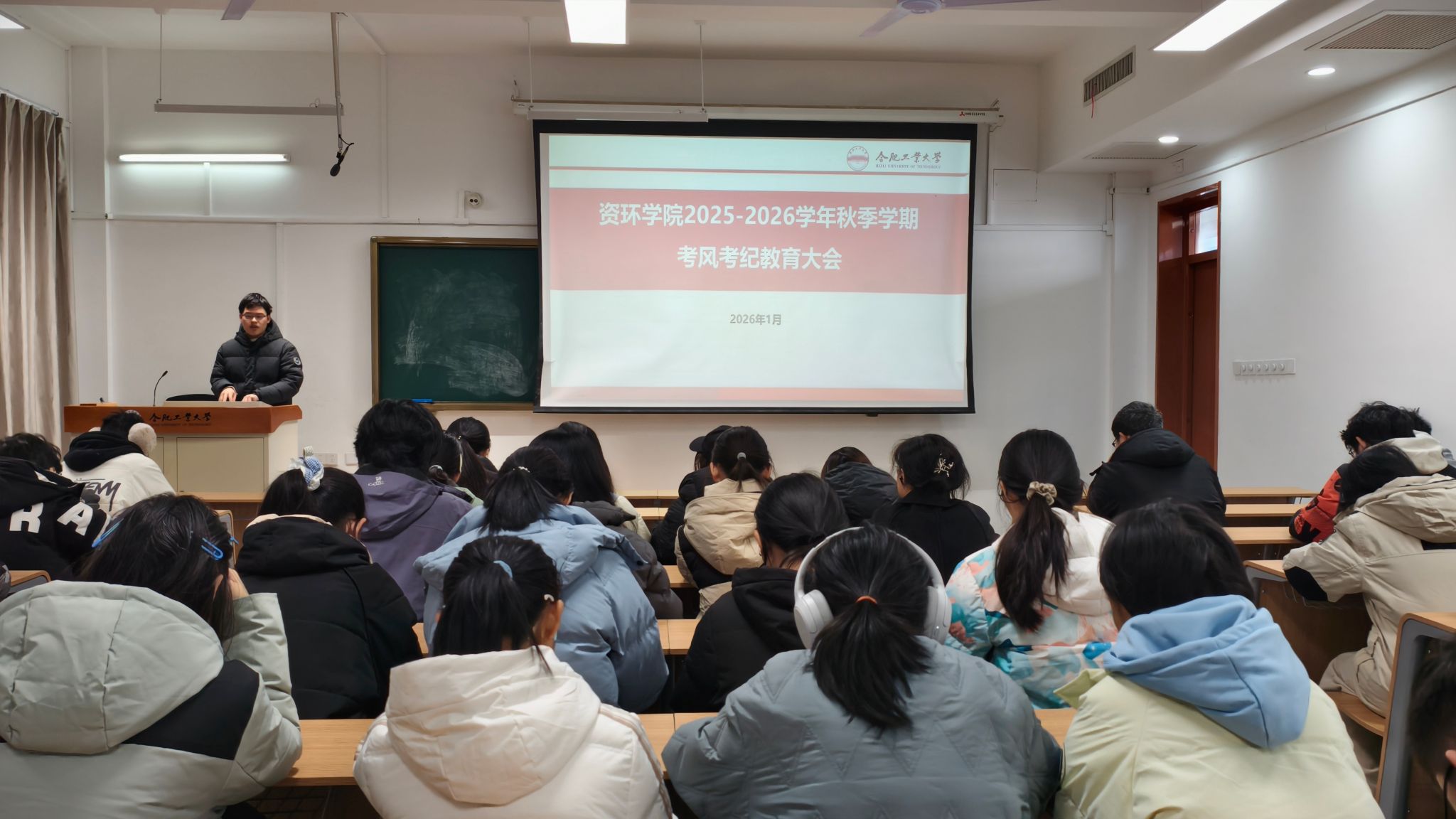 近日,资源与环境工程学院2025级本科生在翠八教109教室开展了2025-2026学年秋季学期考风考纪教育大会,学院本科生辅导员王正、2025级全体本科生参加会议。