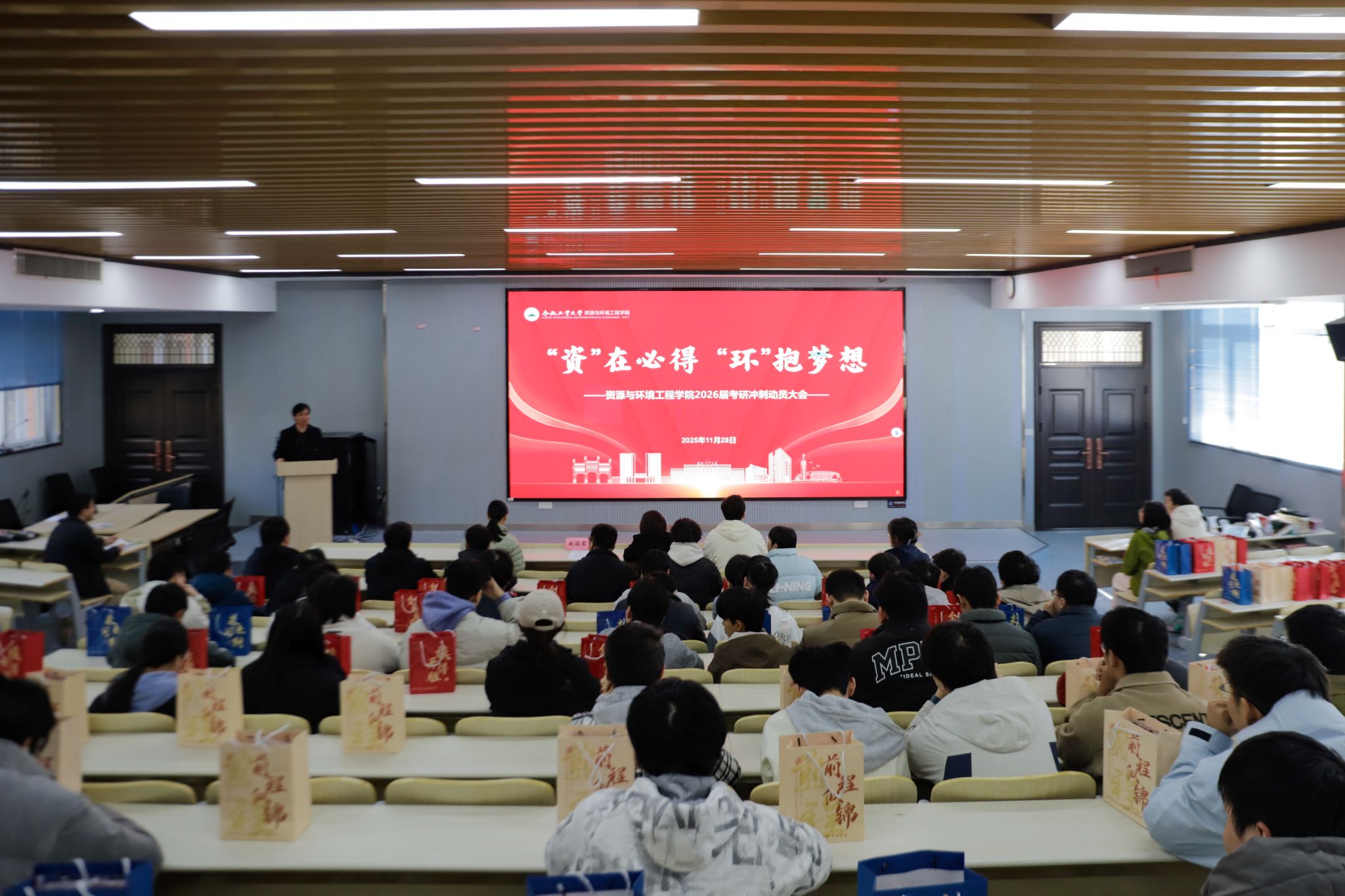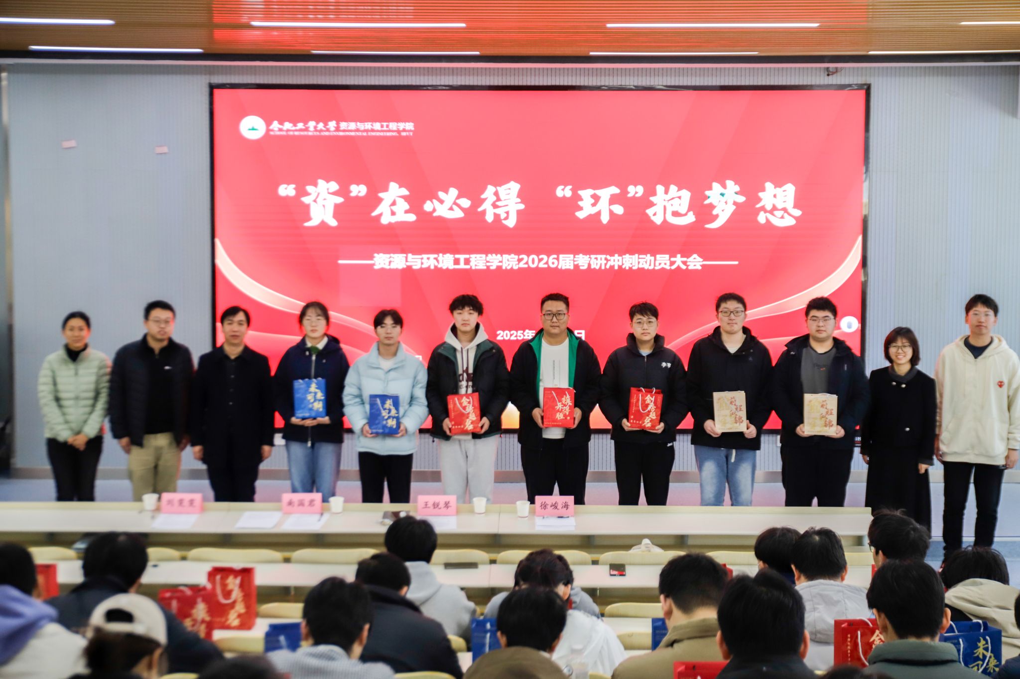 11月28日,为坚定考研学子备考信心,营造积极向上的冲刺氛围,资源与环境工程学院在西教301报告厅举行“‘资’在必得,‘环’抱梦想”2026届考研冲刺动员大会。学院党委书记南国君、党委副书记兼纪委书记王锐琴出席会议,2026届全体考研学生、教师代表参加活动。