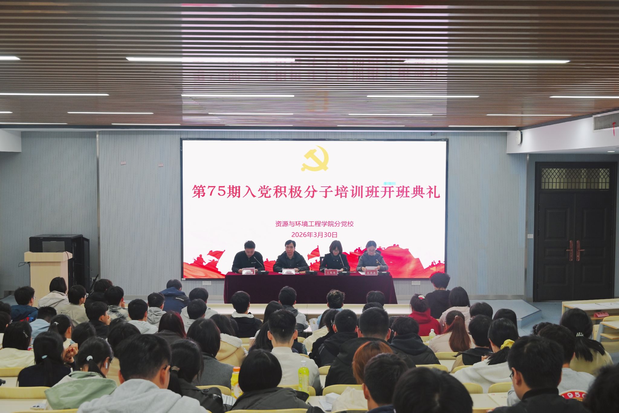 3月30日晚,资源与环境工程学院第75期入党积极分子培训班开班仪式在屯溪路校区西教301报告厅举行。学院党委、分党校相关负责同志、班主任及第75期积极分子培训班学员参加仪式。